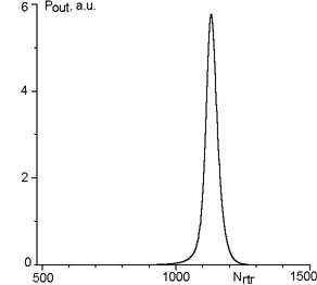 | Временная зависимость мощности излучения от номера обхода по резонатору. |