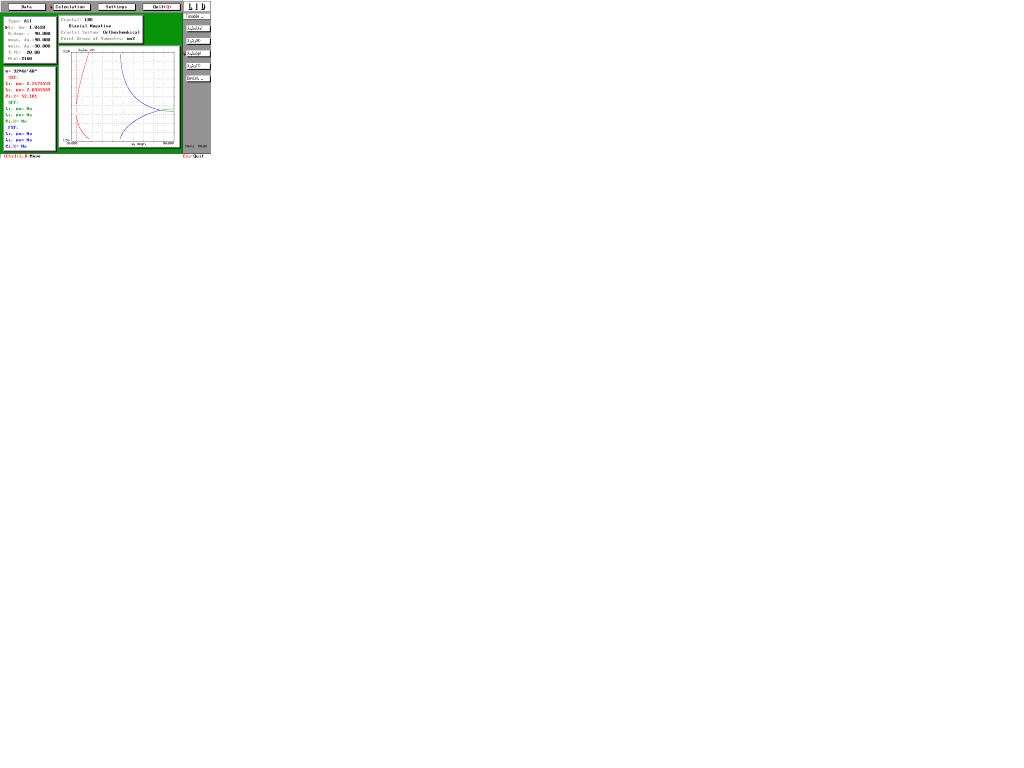 Программа "ГСРЧ - Фазовый синхронизм" позволяет выбрать кристалл для пгенератора суммарной и разностной частоты в интересующем вас режиме и выполнить расчеты интегральных параметров: углов синхронизма, полос усиления - температурной, спектральной, углово